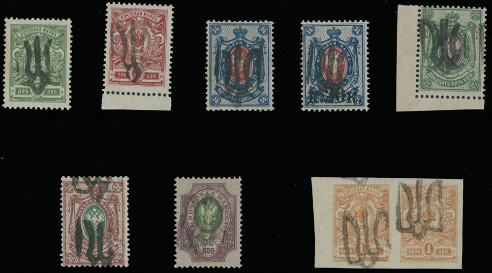 1918, black overprint (type 37) on perforated 2k-50k and imperforate 1k in pair, full OG, LH/hinged, VF, C.v. $61 plus 35k (signed J. Bulat) priced with -‘-, Est. $200-$250 , Bulat #1937/50, 1952