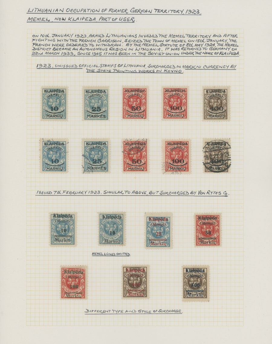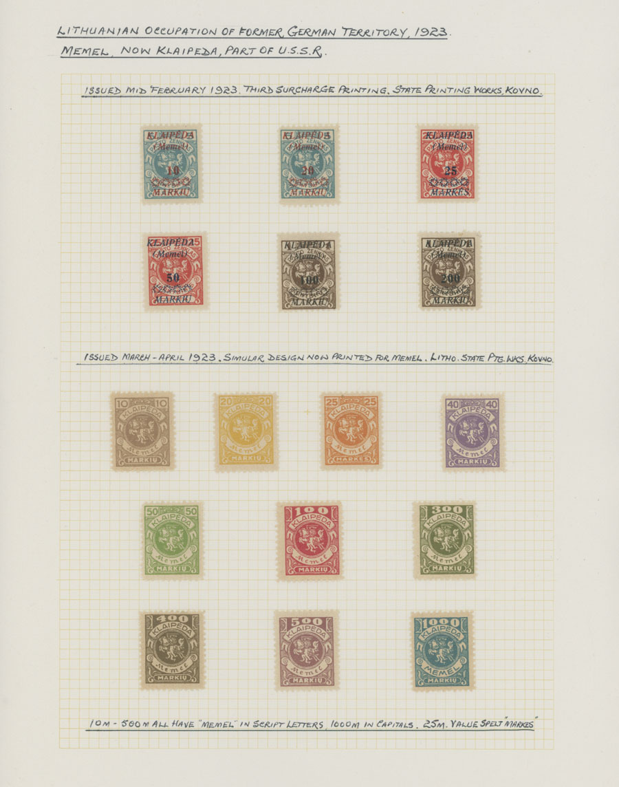 BALANCE OF EASTERN EUROPEAN COLLECTIONS: 1918-50, Memel issues of 1923 on two pages with total C.v. about $80, stockbook filled with mint and used Poland from 1918 to 1950’s, including complete and part sets, C.v. $700; and Collection of Slovakia of 1939-44 in an album with first overprints, semi-postal, air post and back of the book, C.v. is over $1,000. Total C.v. for the lot is $1,800, Est. $300-$400