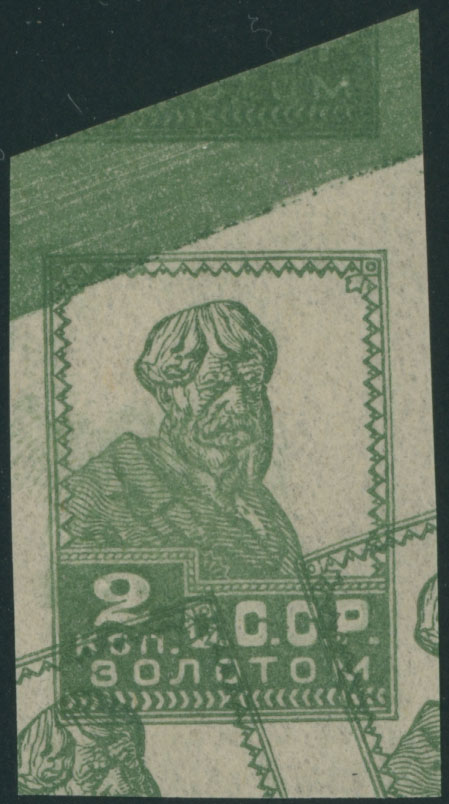 1924-25, definitive issue, peasant 2k green, nice margins imperforate single with double impression, second print is placed diagonally with control line at top, full OG, NH, VF, A. Farberov certificate, Est. $400-$500 , Scott #277 imp
