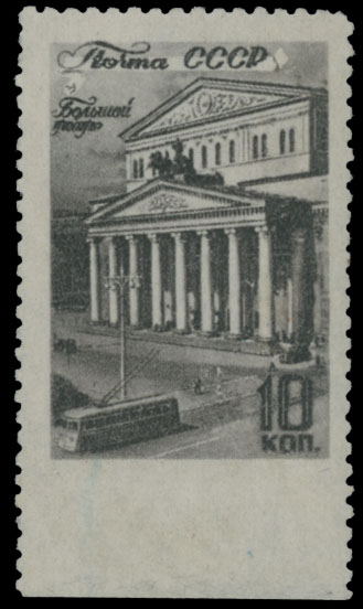 1947, Bolshoi Theater, 10k brown black, bottom sheet margin single, imperforate at foot, full OG, NH, VF, Est. $250-$300 , Scott #1060 var