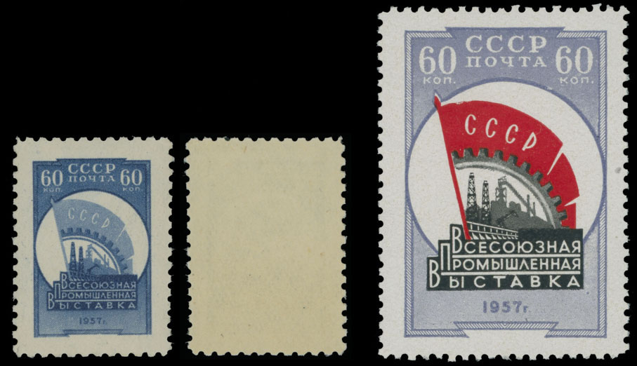 1958, All-Union Industrial Exhibition, reduced format perforated (L12½) proof of 60k in deep blue, gummed, VF and very rare, a common stamp is included for comparison, ex-M. Pipe Collection, Raritan Stamps guarantee, Est. $3,000- $4,000 , Scott #2030
