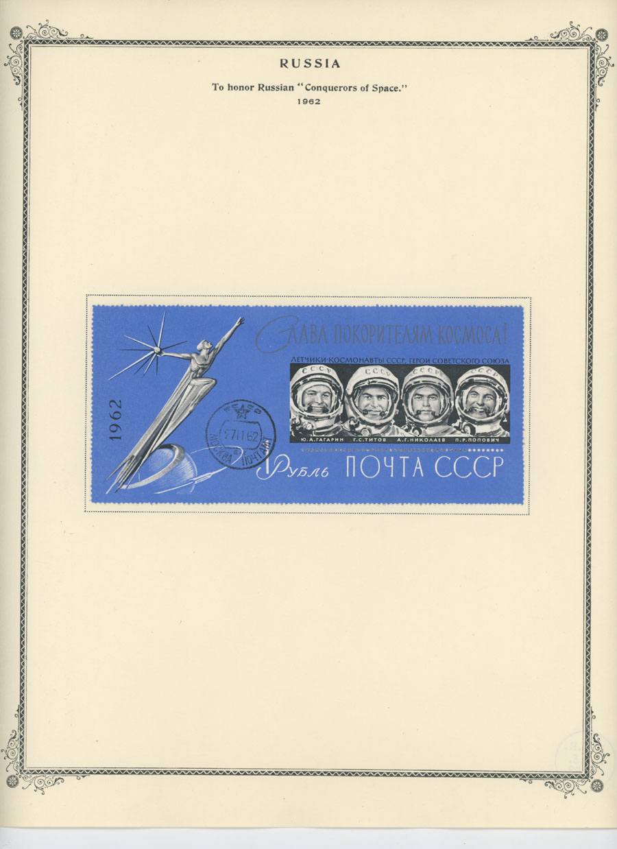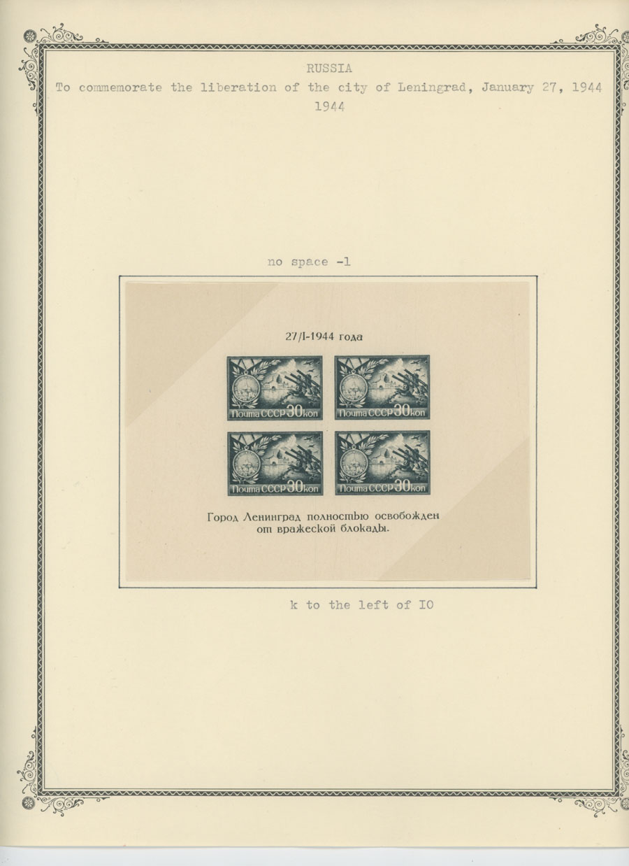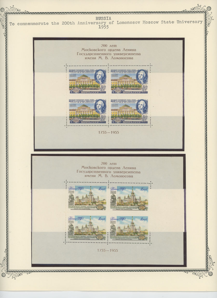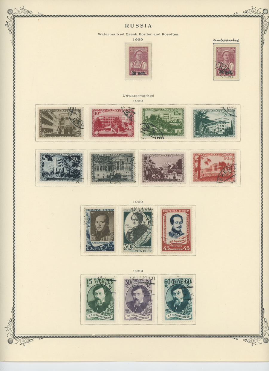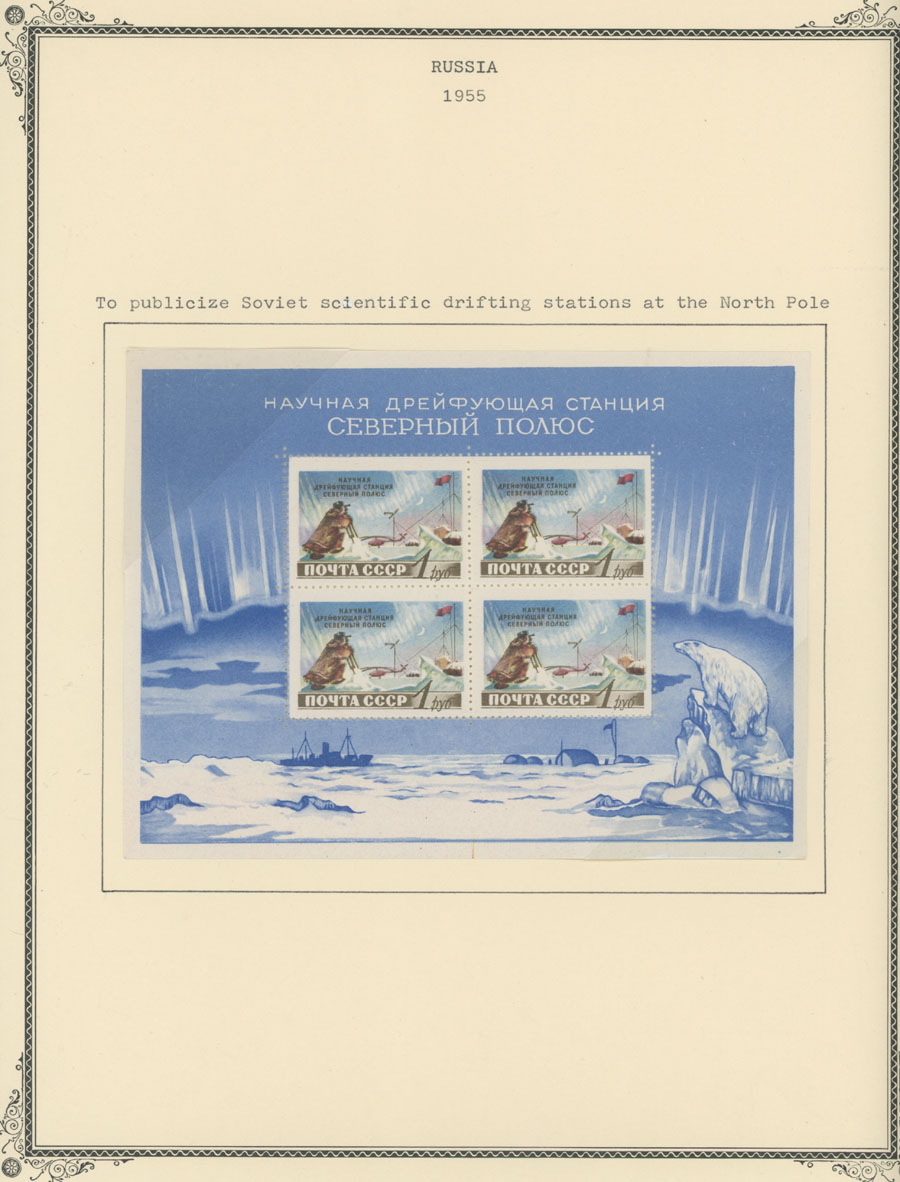 NEAT COLLECTION ON SCOTT ALBUM PAGES: 1923-64, about 2400 mint and used stamps and 33 souvenir sheets, starting with imperf and perf Agriculture Exhibition of 1923, very well completed unit, highlights of mint issues included 1st definitive imperf set on watermarked paper, 15th Anniversary of Revolution, Leningrad Exhibition, Lenin Mausoleum and Mendeleev sets, Stalin and Lenin souvenir sheets of 1949 and many more, full/part of OG or CTO with OG, F/VF, C.v. is $10,000, Est. $1,500-$2,000