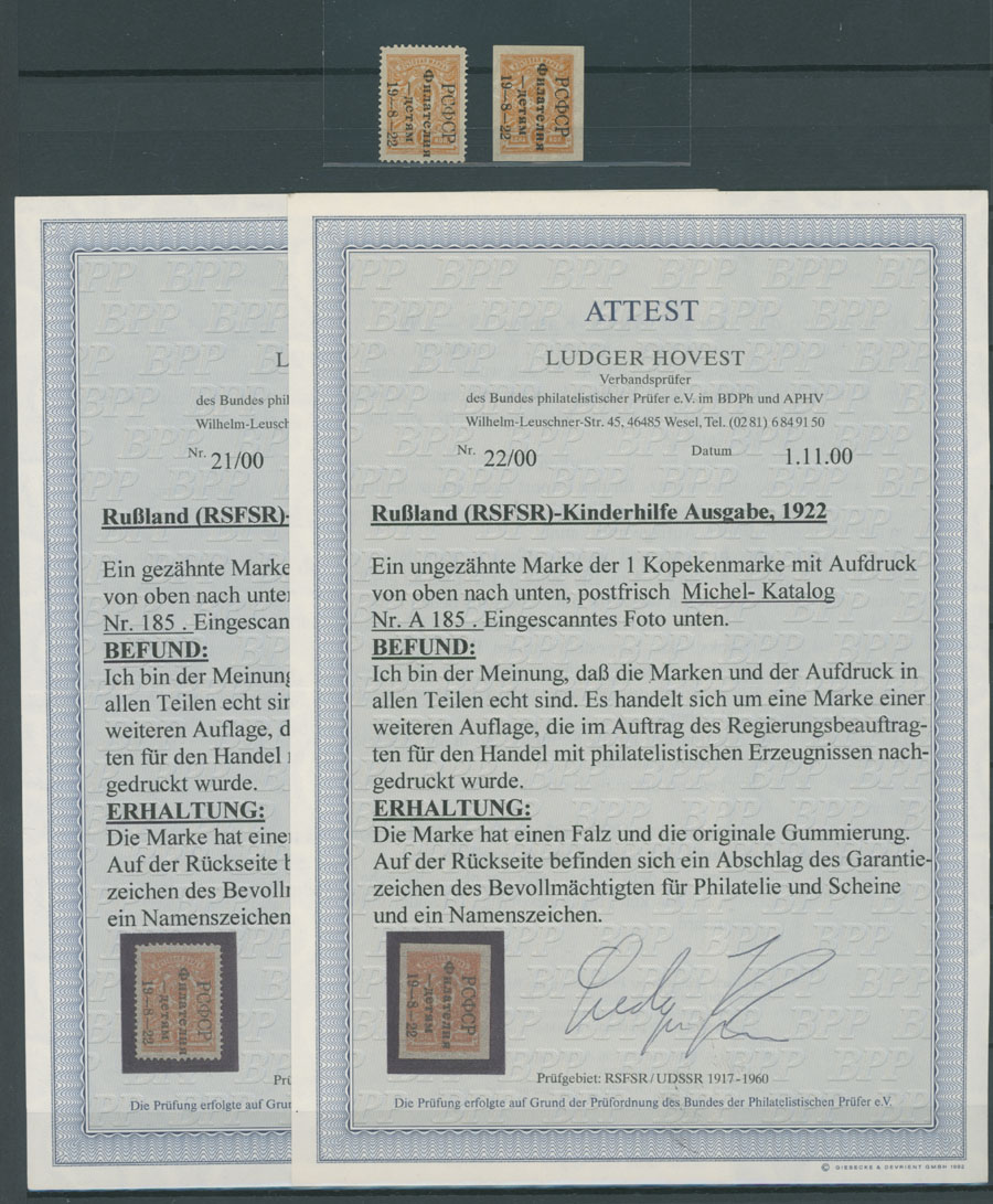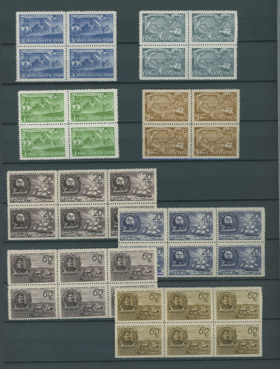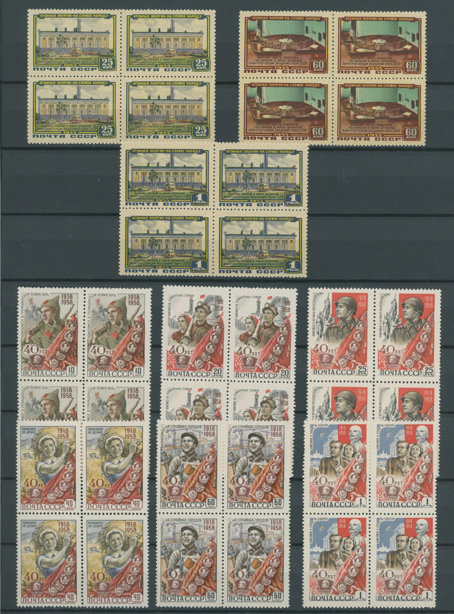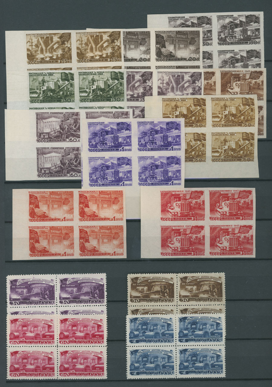 BEAUTIFUL PREMIUM QUALITY ASSORTMENT: 1905-58, about 500 mint stamps in singles, pairs, strips and blocks of 4, 6 or 20, starting with several Imperial, RSFSR and early Soviet regular and commemorative stamps, representing numerous printing and perforation errors, most catalog value is in multiples of 1940’s-50’s with total of 16 complete issues in blocks, in addition two ”key” stamps of Philately for the Children from the issue for collectors, both with L. Hovest certificates, nice condition, full OG, mainly NH, F/VF or better, great potential unit, C.v. is well over $5,500, Est. $1,600-$2,000, Scott #70/2140, B15/29