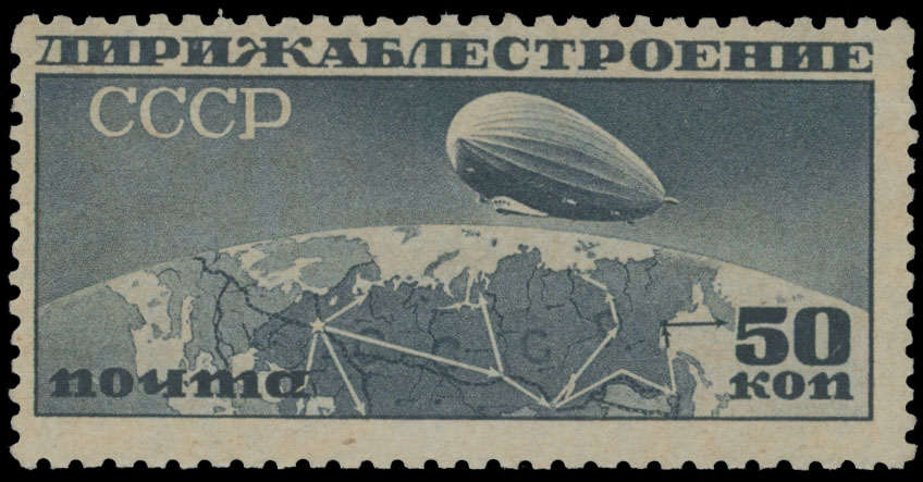 1931, Airship over the Arctic Region, 50k dark gray blue, error of color, comb perforation 10½x12, watermark Borders and Rosettes, full OG, NH, mostly VF, C.v. $900, Est. $600-$700 , Scott #C23a