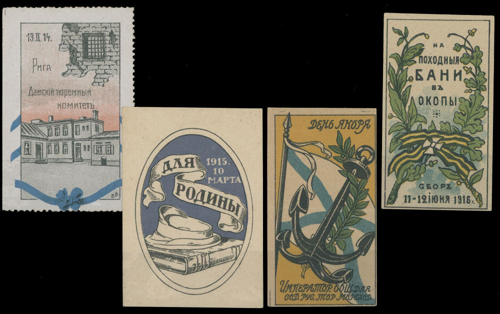 1913-16, Anchor Day (horizontal crease), Riga Women’s Prison Committee, ”For Homeland. 1915. March, 10”, ”Field Baths in the Trenches”, mainly fresh and F/VF, Est. $150-$200