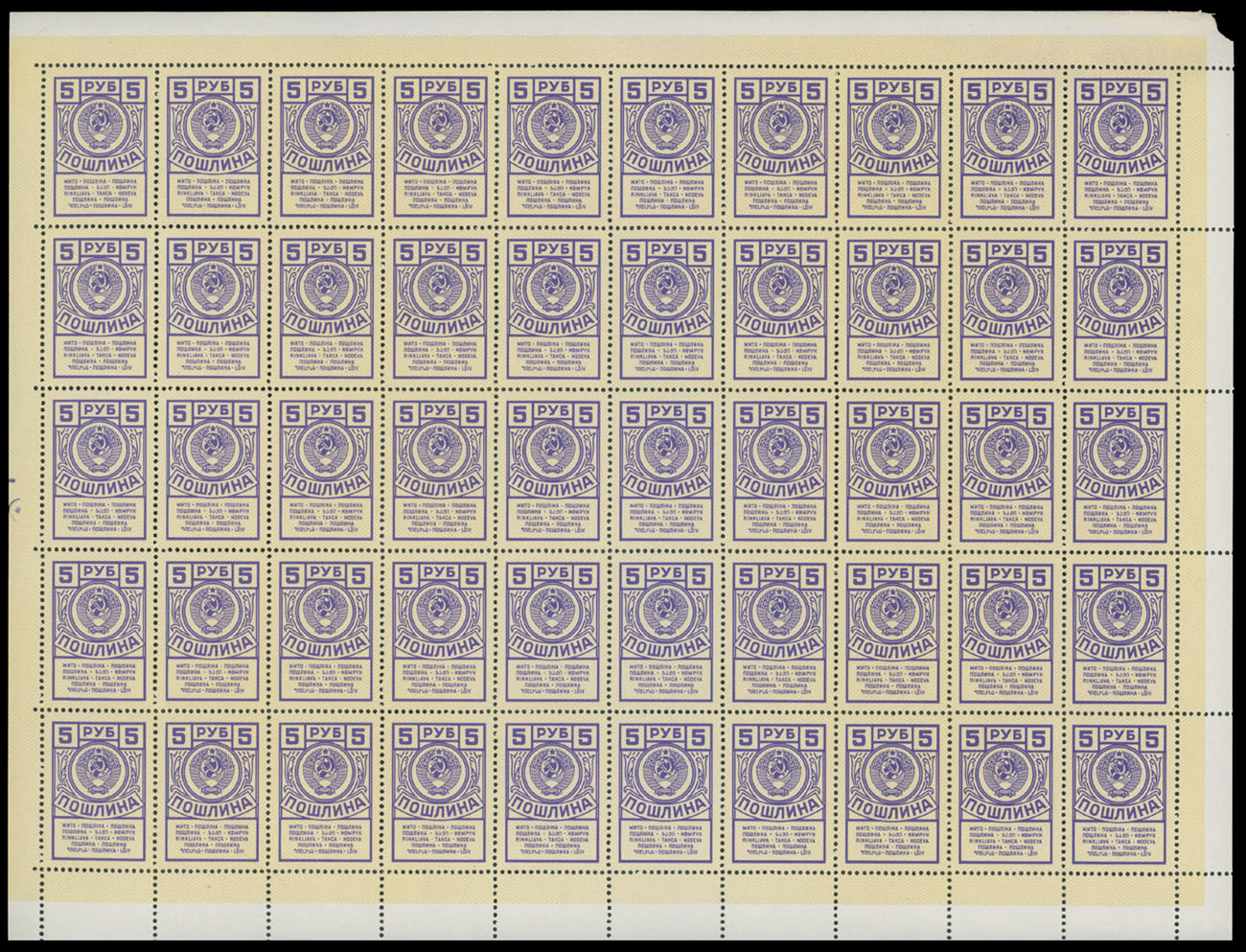 1962-82, 10k-50k, complete set of four in panes of 100 and 5r in sheet of 50, minor perf flaws, still full OG, NH, F/VF, G. Mirsky Cat. #67-70, 72, C.v. $450++, Est. $200-$250